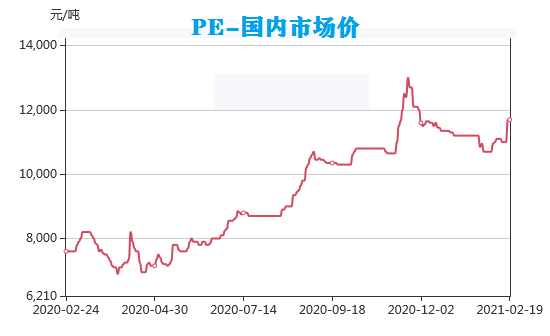 After the Spring Festival in 2021, the market of plastic raw materials was affected by the high operating rate, and rose against the trend in an all-round way. Except for individual high-level fluctuations, the prices of PVC and other raw materials have shown a linear upward trend. It is expected that this market will continue for at least two month.
