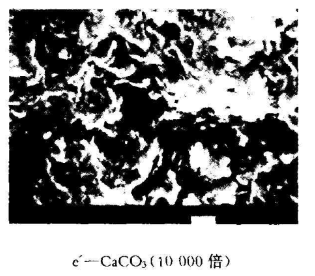 比較圖2中放大1 500倍后a~e的SEM 照片,活性CaCO3和硅土與有機(jī)體系相容性較好,分散均勻;而滑石粉、陶土、云母在體系中的分散不均勻,與有機(jī)體系的相容性不好,有顆粒脫落和空洞。圖2中放大10 000倍的a ~e 的SEM 照片可以更清楚地觀察到上述情況。由于硅土屬于有機(jī)填料,對材料的屈服強(qiáng)度、拉伸強(qiáng)度、彎曲強(qiáng)度和斷裂強(qiáng)度的提高是有幫助的,但不能改善材料的沖擊性能;CaCO3填料卻能很好地發(fā)揮其增韌效果,大大地改善材料的沖擊性能。