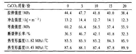 (4)隨著CaCO3用量的增加,PVC/CPVC合金的拉伸強(qiáng)度、彎曲強(qiáng)度 斷裂伸長率總體上均呈先上升后下降的趨勢。活性CaCO3用量的變化對沖擊強(qiáng)度幾乎無影響。熱變形溫度在活性CaCO3用量為5~15份時變化不大,但當(dāng)活性CaCO3用量超過10份時,熱變形溫度上升。